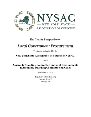 On Wednesday, November 12, NYSAC Executive Director Stephen Acquario testified before the Assembly Local Governments and Cities committees on critical procurement reforms.